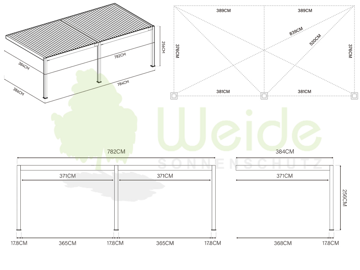 Die Weide Aluminium Anstellpavillon Terrassenüberdachung, auch bekannt als Pergola, bietet mit ihrem verstellbaren Lamellendach den perfekten Sonnenschutz für Ihren Garten. Hergestellt aus hochwertigen Materialien in Bayern, garantiert die Pergola von Weide Langlebigkeit und bestmöglichen Schutz vor UV-Strahlen und leichtem Regen. Die stufenlos einstellbaren Aluminiumlamellen sorgen für angenehme Lichtstimmungen und optimalen Lichteinfall. Dank der integrierten Regenrinne wird Regenwasser effizient über die Aluminium-Pfosten abgeleitet. Einfach zu montieren und mit präzisen Vorbohrungen ausgestattet, ist die Weide Pergola die ideale Ergänzung für Ihre Terrasse.