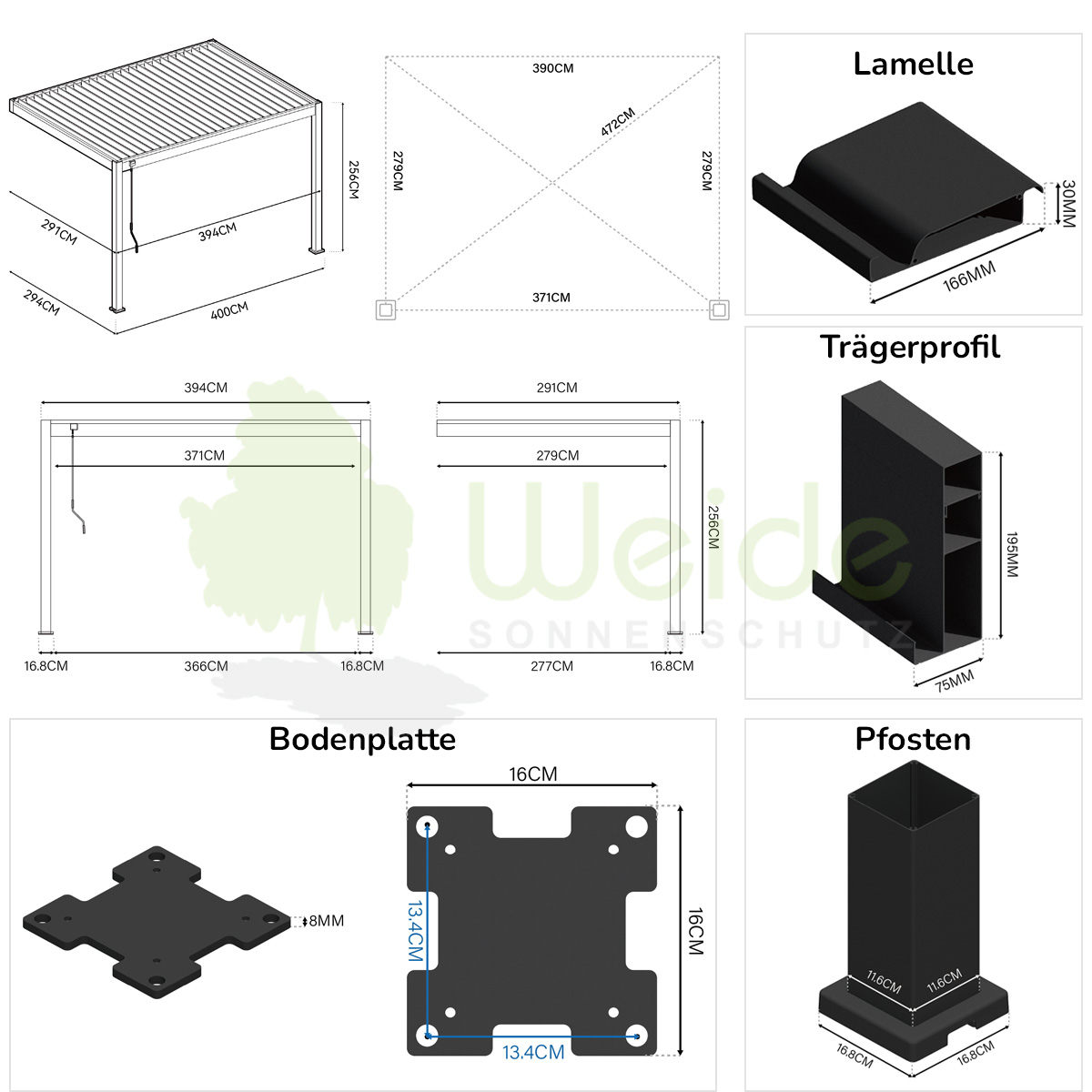 Weide Sonnenrollo Lamellendach: Perfekter Sonnenschutz in verschiedenen Größen für Ihre Pergola.