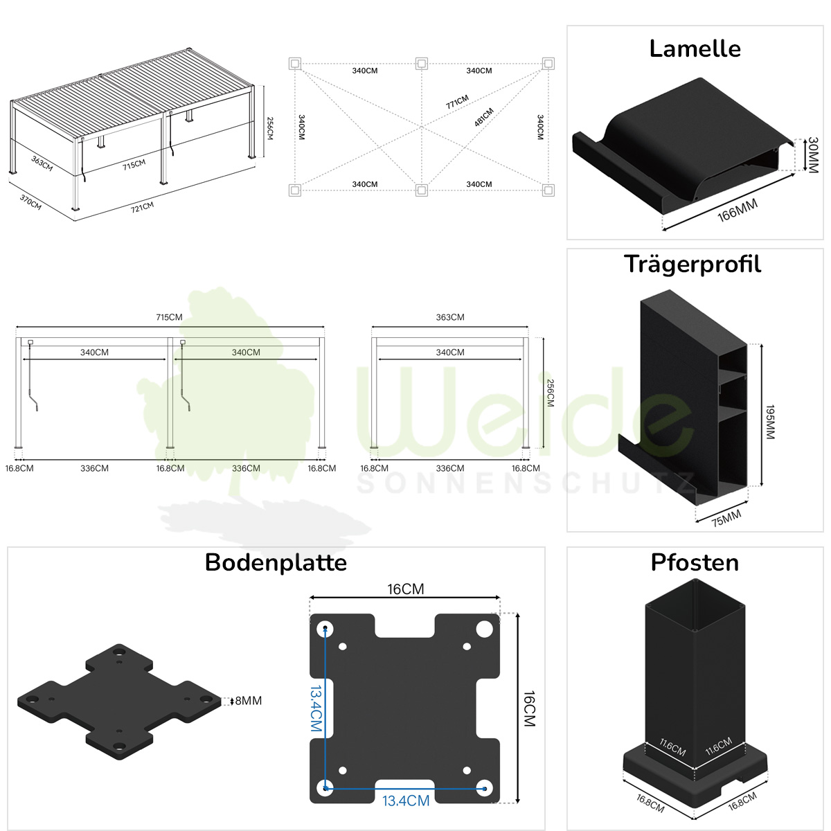 Weide Sonnenrollo Lamellendach: Perfekter Sonnenschutz in verschiedenen Größen für Ihre Pergola.