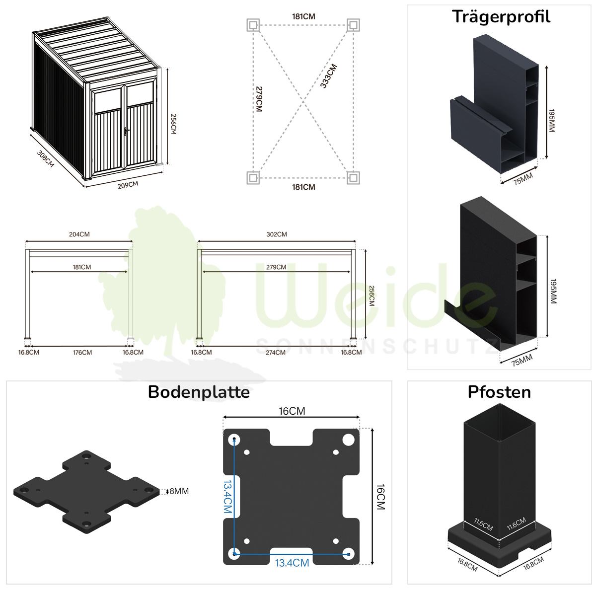 - Fundament erforderlich: Ja, Betonfundament empfohlen